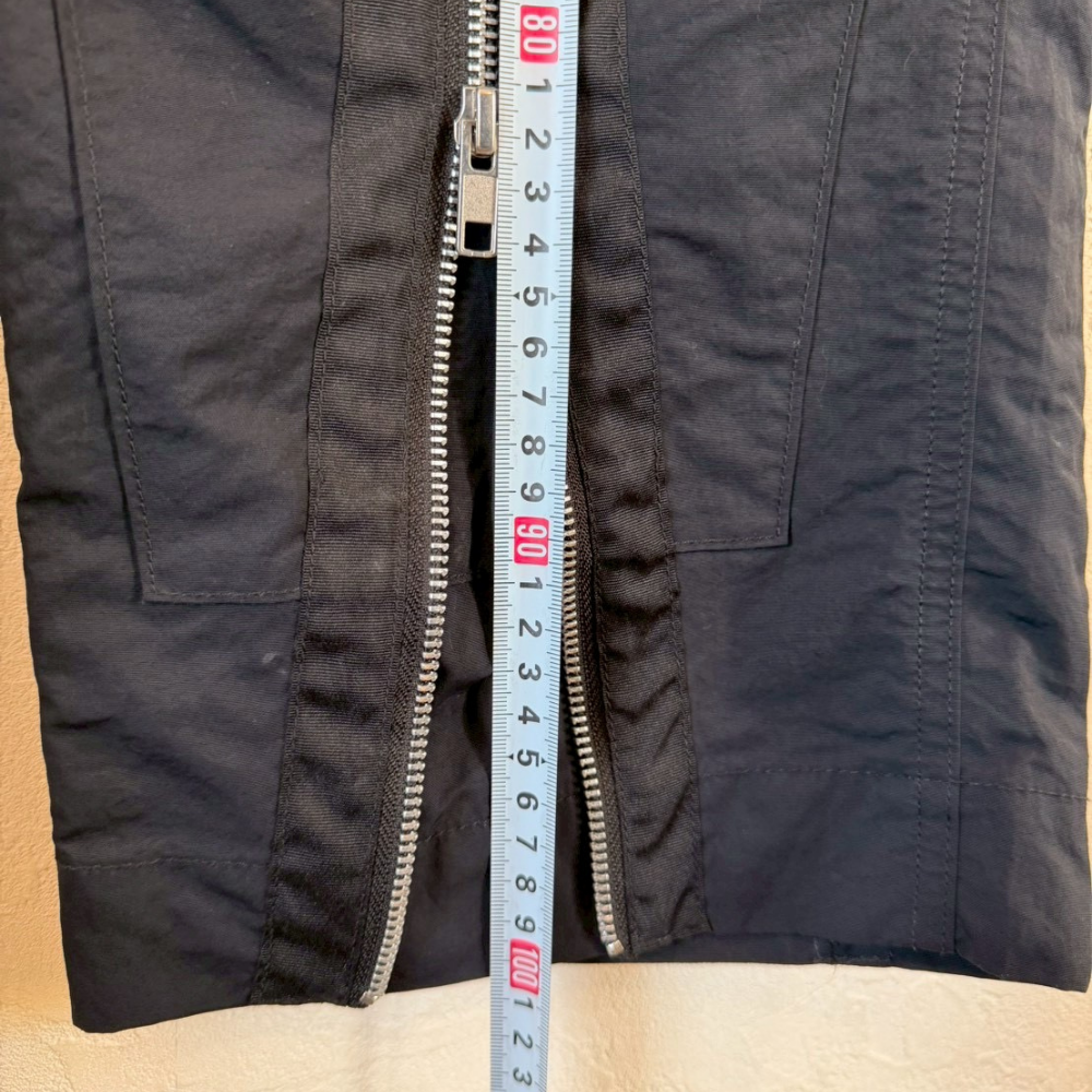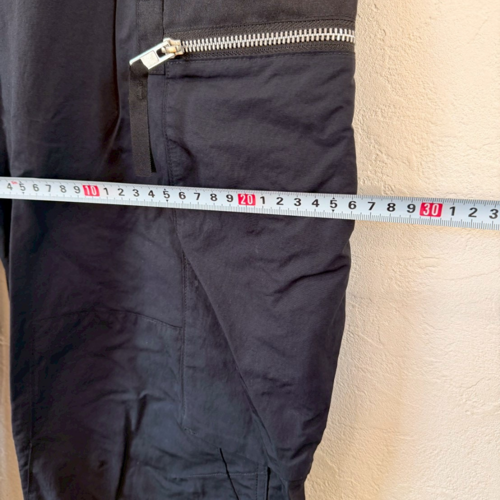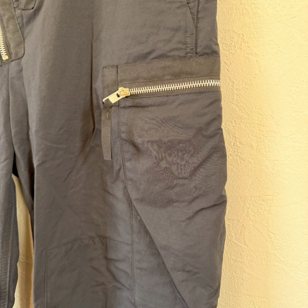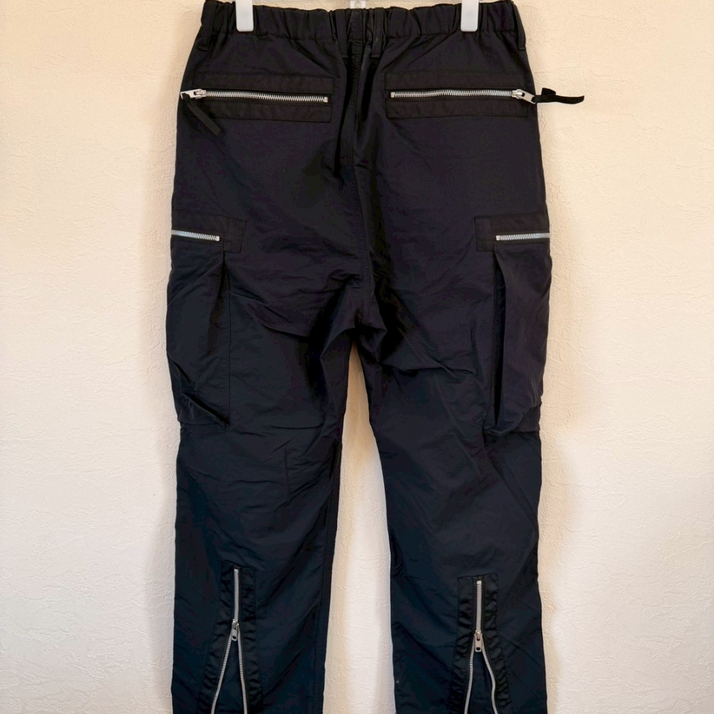 AIMSTEBLACK(Aimste Black)の特徴的なマルチジップデザインカーゴパンツ。フロント・サイドに複数配置されたジップポケットに加え、膝周り・裾へ向かっての切替パネルが立体的なシルエットを生み出しています。裾にかけて自然に細くなるテーパードラインで、スニーカーとも相性の良いスタイリッシュな一本です。