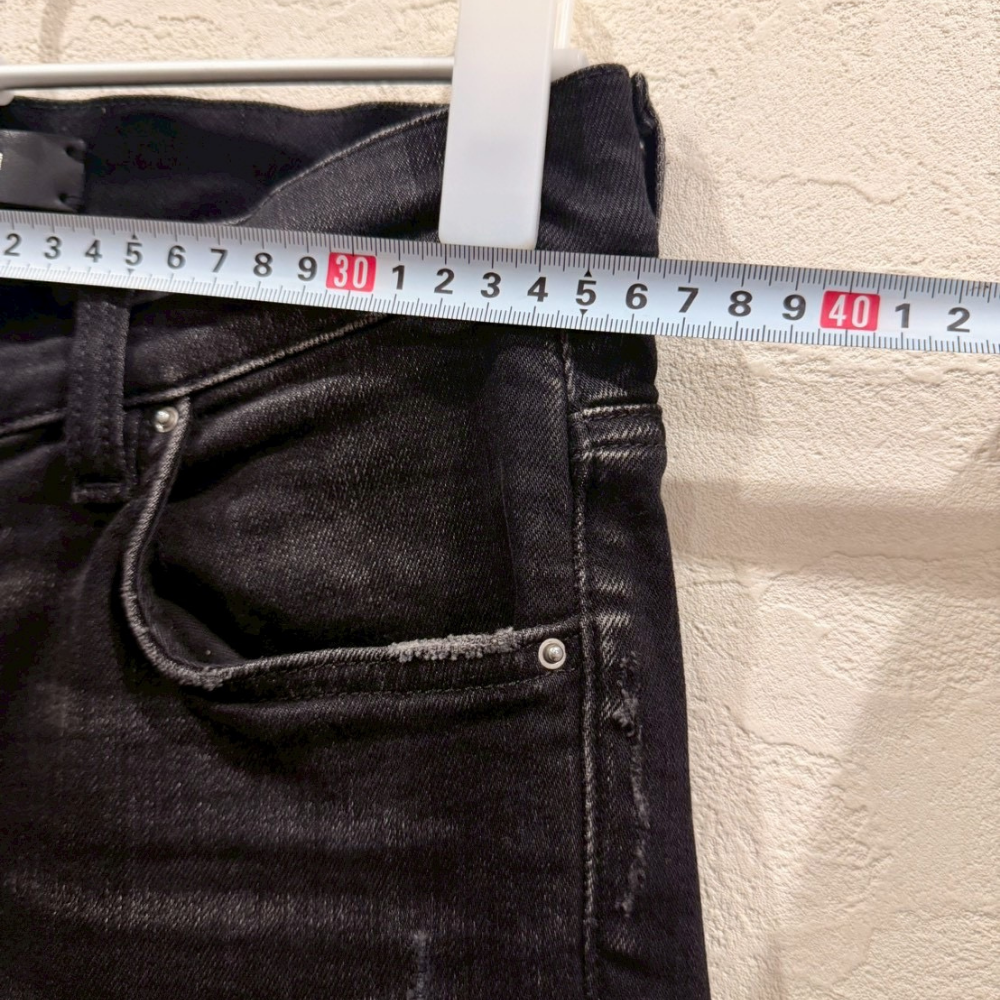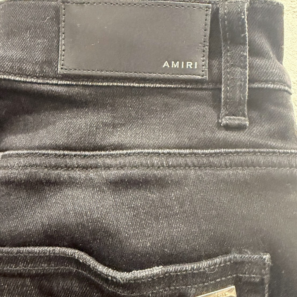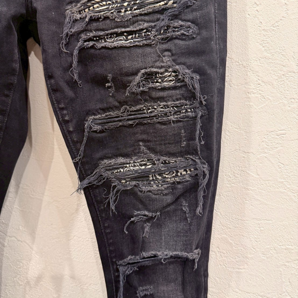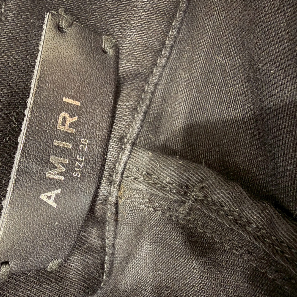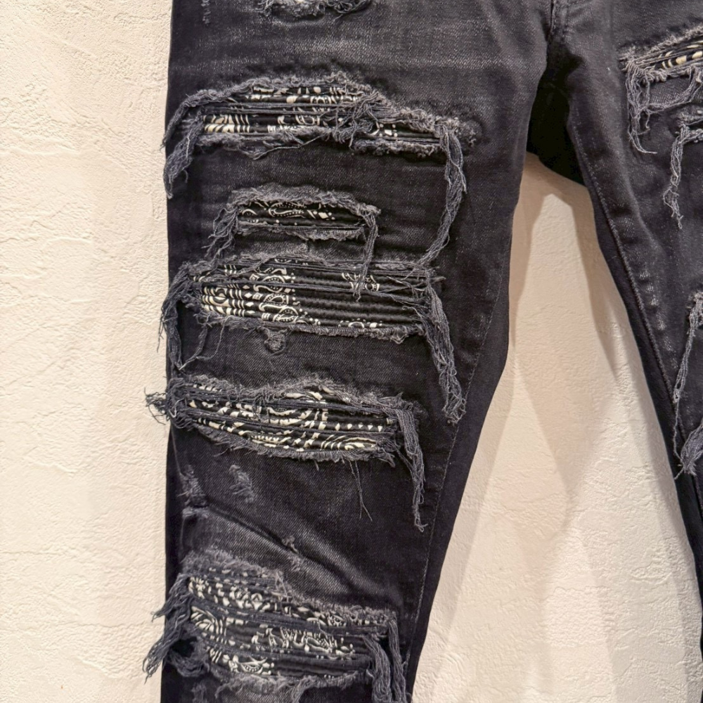 AMIRI MX1 スキニーデニム ブラック クラッシュ レザーパッチ ダメージデニム