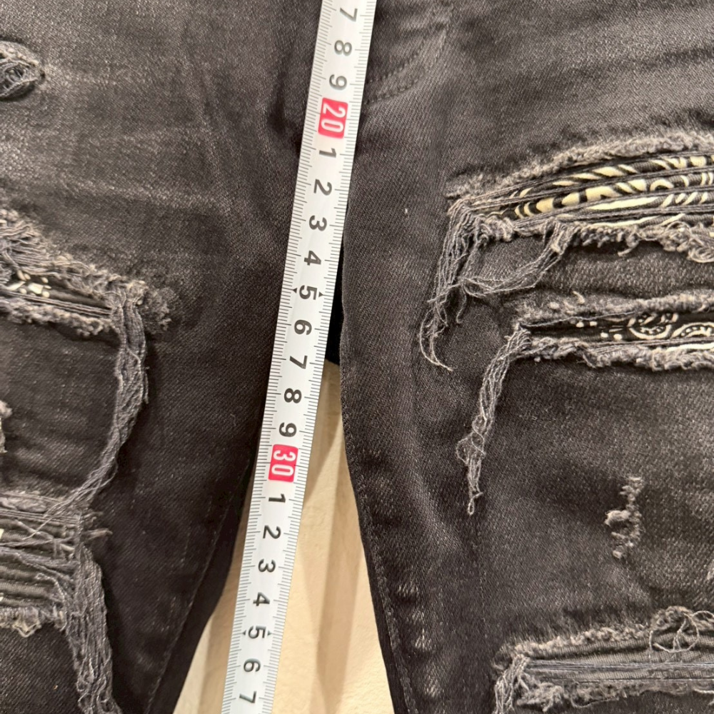 “AMIRI MX1 スキニーデニム ブラック クラッシュ レザーパッチ ダメージデニム” の口コミを投稿します