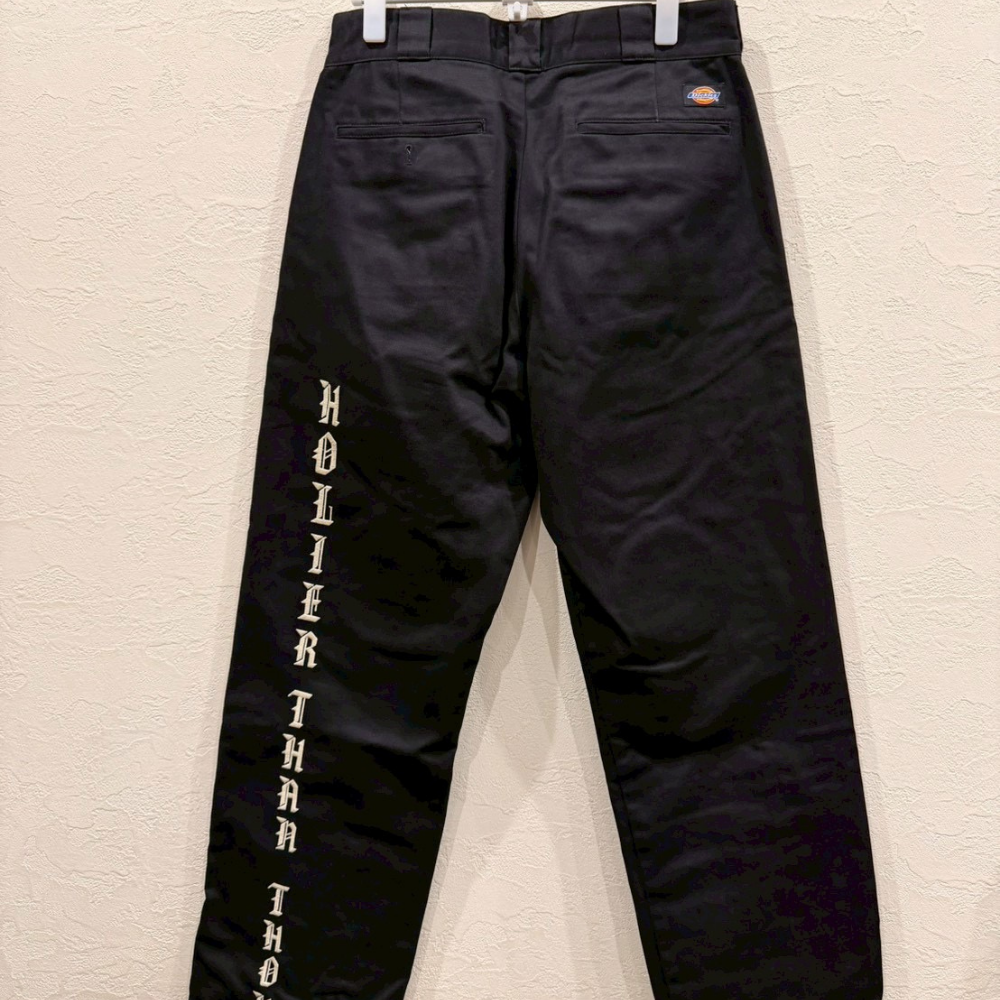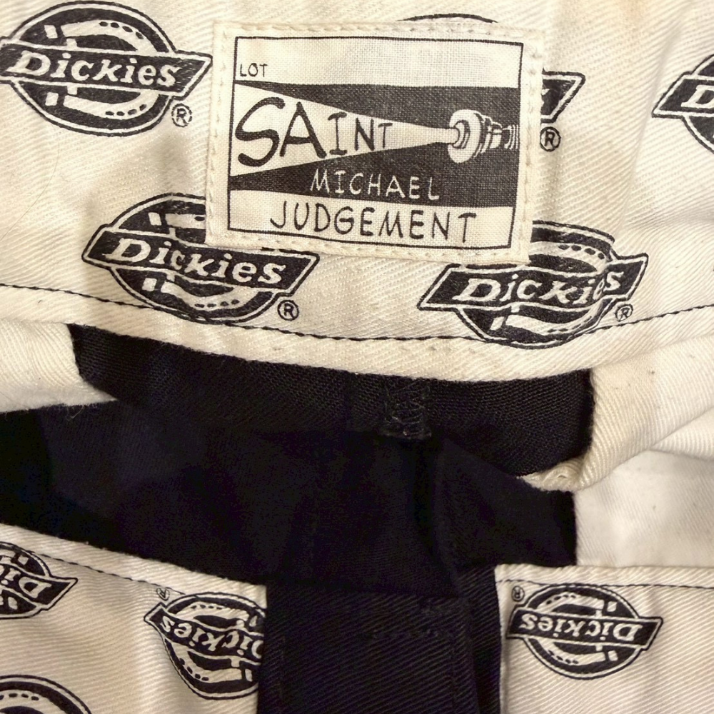 裾付近やプリント部分にも特段大きなダメージは見られず、全体的に良好なコンディション。バックポケットにはDickies風のワッペンが付き、カジュアルスタイルのアクセントとしても優秀です。普段のスタイリングに個性を加えたい方や、デザイン性のあるパンツをお探しの方におすすめのアイテムです。