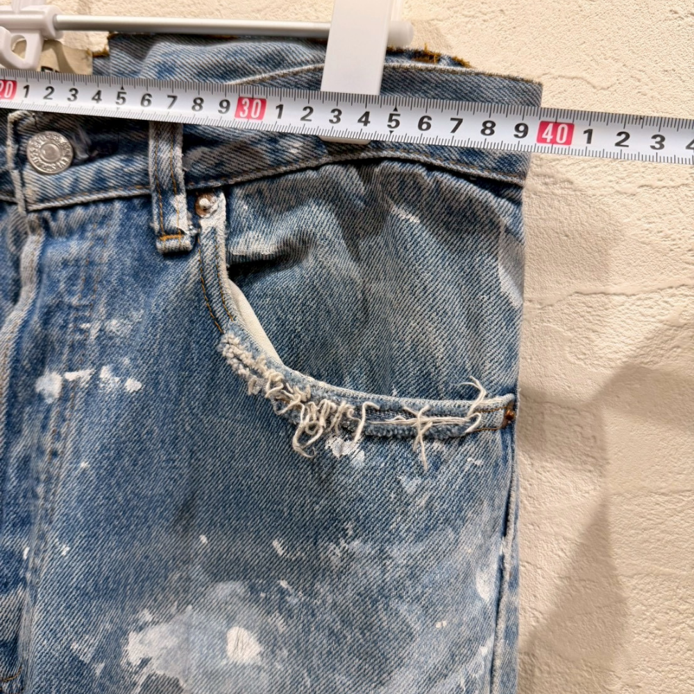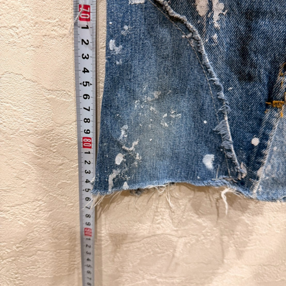 シルエットは裾に向かって緩やかに広がるフレアライン。ブーツやスニーカーとの相性が抜群で、脚を長く見せる効果もあります。ハイブランド・アーティストからの支持が強いギャラデの中でも、リメイクの完成度が高く市場での流通も少ないモデル。唯一無二の一本を求める方に強くおすすめです。