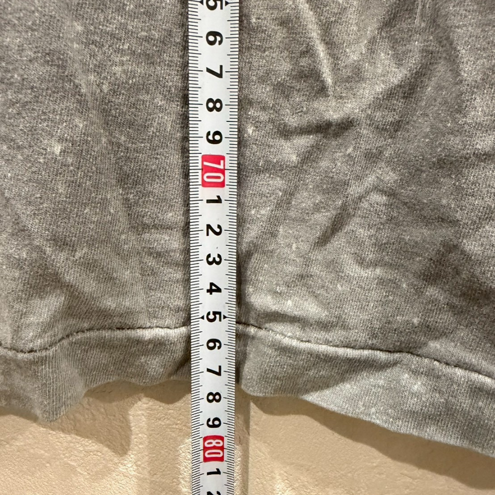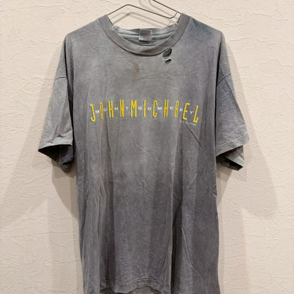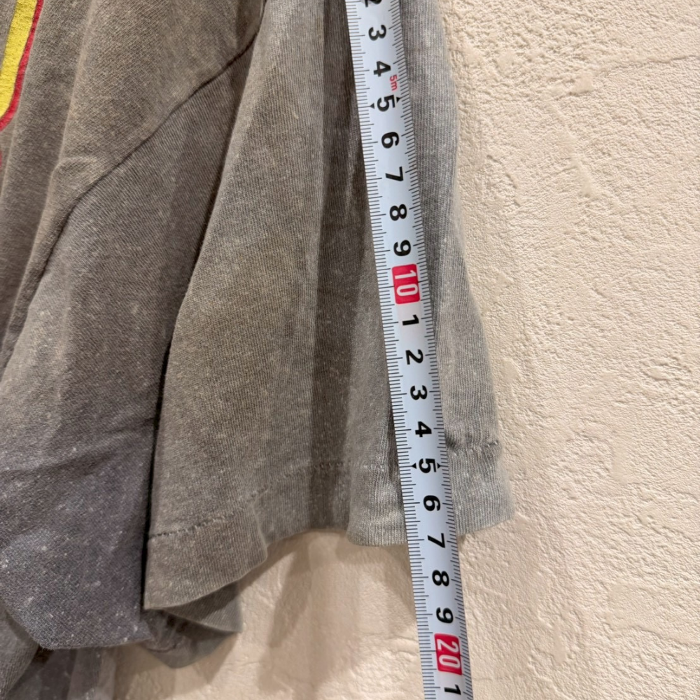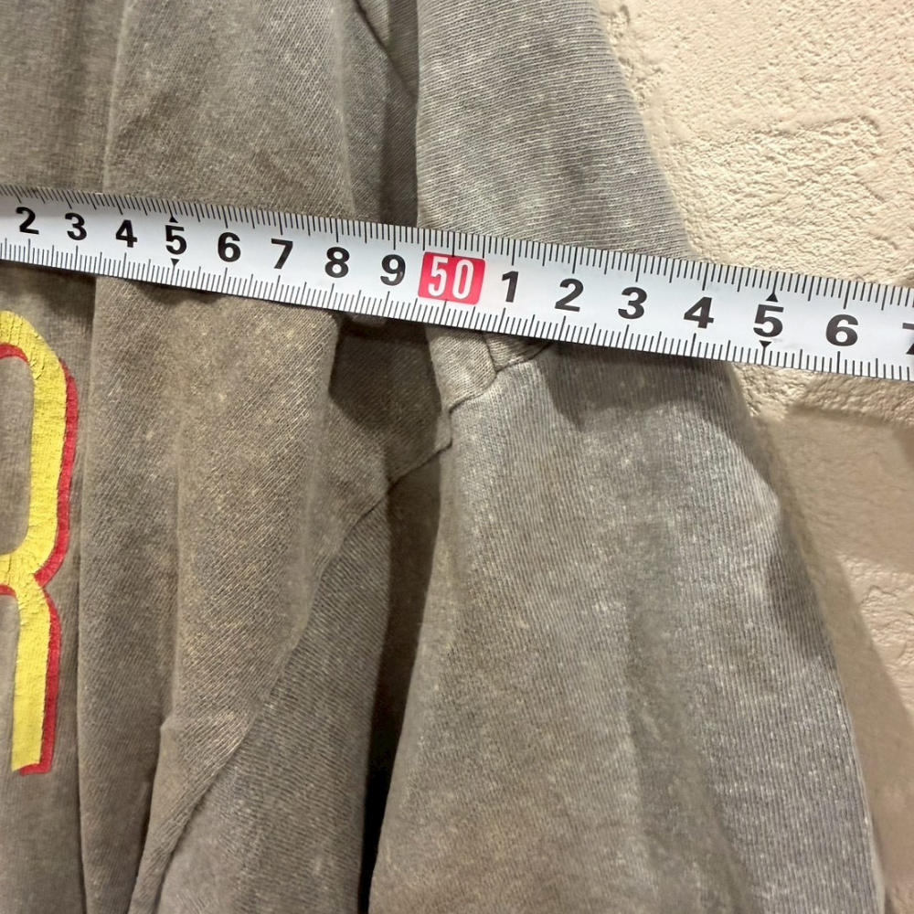裾や肩周りに軽い使用感が見られますが、着用には問題なく、むしろこなれ感を演出するポイントになっています。シルエットはゆったりと着られるサイズ感で、ストリート系・古着系ファッションとも相性が良い万能アイテム。個性的なTシャツを探している方や、ヴィンテージの雰囲気が好きな方におすすめです。