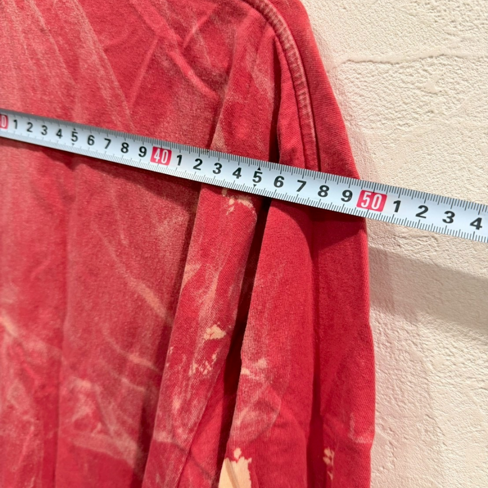 全体にフェード感や使用感が見られますが、そこが逆に雰囲気を高め、古着としての魅力を十分に引き出しています。シルエットは程よくゆったりとしており、デニムやカーゴパンツと合わせるだけでスタイルの決まる万能アイテム。ストリート系・ハイブランド古着を好む方に特におすすめの一枚です。